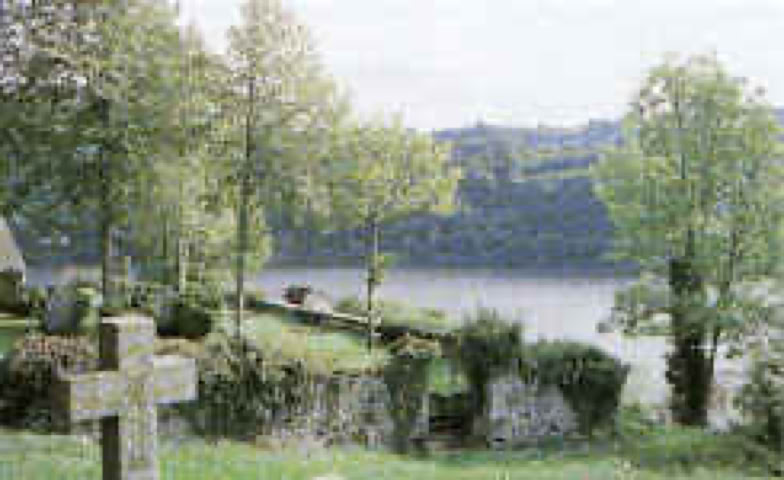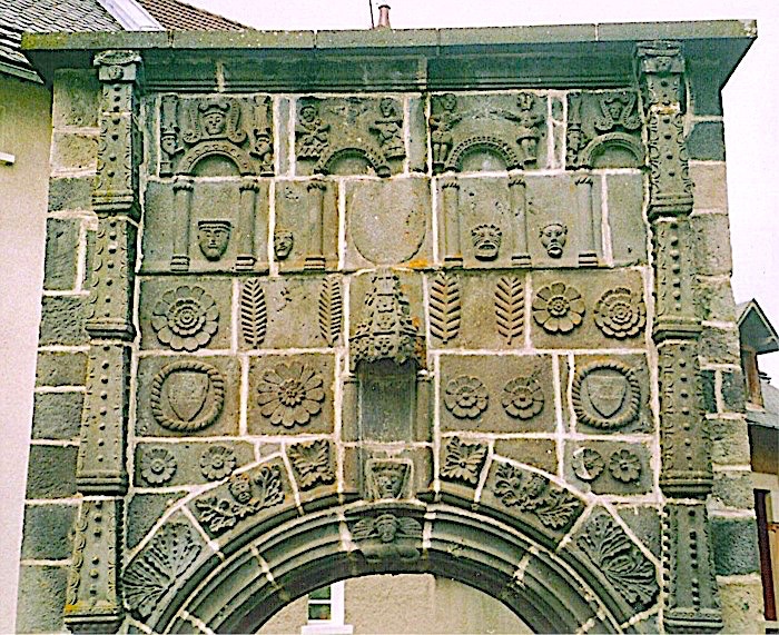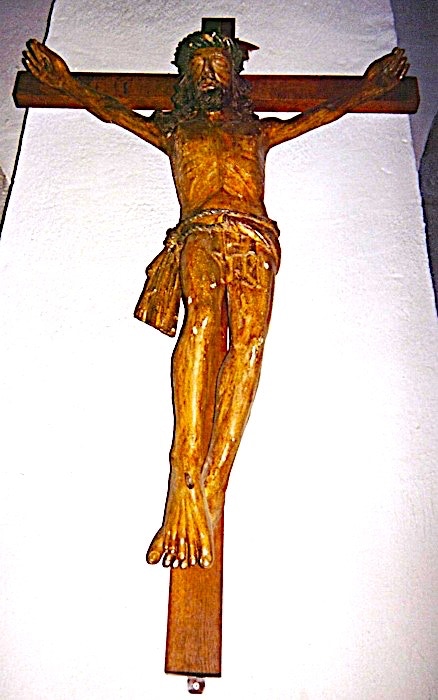 À noter la croix en fer du cimetière du XVIIIème siècle (photo ci-dessous à gauche) ; il s'agit d'une croix ostensoir, aux fers plats et à l'amortissement en fer de lance baguée. Le centre du croisillon est occupé par un Christ de petite taille de bronze, surmonté du titulus. La hampe est bordée d'une crête à éléments spiralés, comme la croix très semblable d'Orcival (au nord de la basilique), vraisemblablement oeuvres du même auteur. On dénombre 41 croix monumentales sur l'étendue de la commune de Saint-Sauves, dont la plus ancienne, d'après l'inscription sur son socle (1823), se trouverait dans le village de Lestomble (photo ci-dessous à droite).