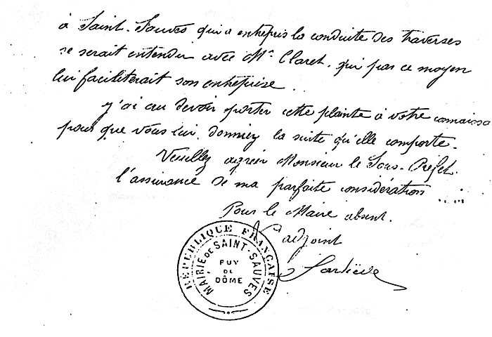 Lettre de l'adjoint au sous-préfet - 1er août 1897