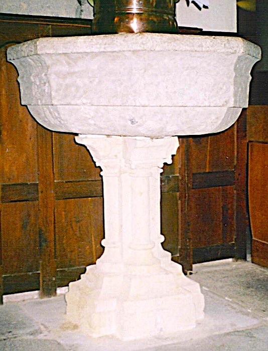 Les anciens fonts baptismaux sont conservés sur un belvédère, à proximité de l’église et de l'ancienne mairie.