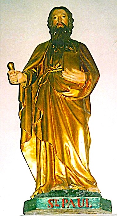 Les statues du XIXème siècle en bois peint des quatre évangélistes (Pierre, Jean-Baptiste, Etienne et Paul) situées dans le choeur ont été inscrites le 12 août 1974 sur la liste des objets inscrits aux monuments historiques. Elles mesurent entre 100 et 110 cm de haut. La lame de l'épée est manquante sur la statue de saint Paul.