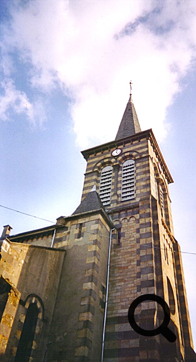 L’église d'origine romane fut reconstruite à neuve de 1872 à 1876 suite à la décision du conseil municipal de remanier le bâtiment. Sa partie la plus ancienne, l’abside circulaire avec sa voûte en cul-de-four, date des XIème et XIIème siècles (les chapiteaux avec entrelacs d'inspiration carolingienne seraient du dernier quart du XIème siècle ; ceux de la nef paraissent légèrement plus tardifs comme étant du XIIème siècle). Les bas-côtés et les clés de voûte des nefs latérales sont du XVIème siècle et sont ornées du blason à trois chevrons de la famille de LEVIS ; à noter le bas-relief (vestige d'un linteau ?) enchâssé dans le mur extérieur orienté nord-est de l'église représentant un griffon et un lion, ainsi que les armoiries scellées sur l'un des piliers centraux de la nef.